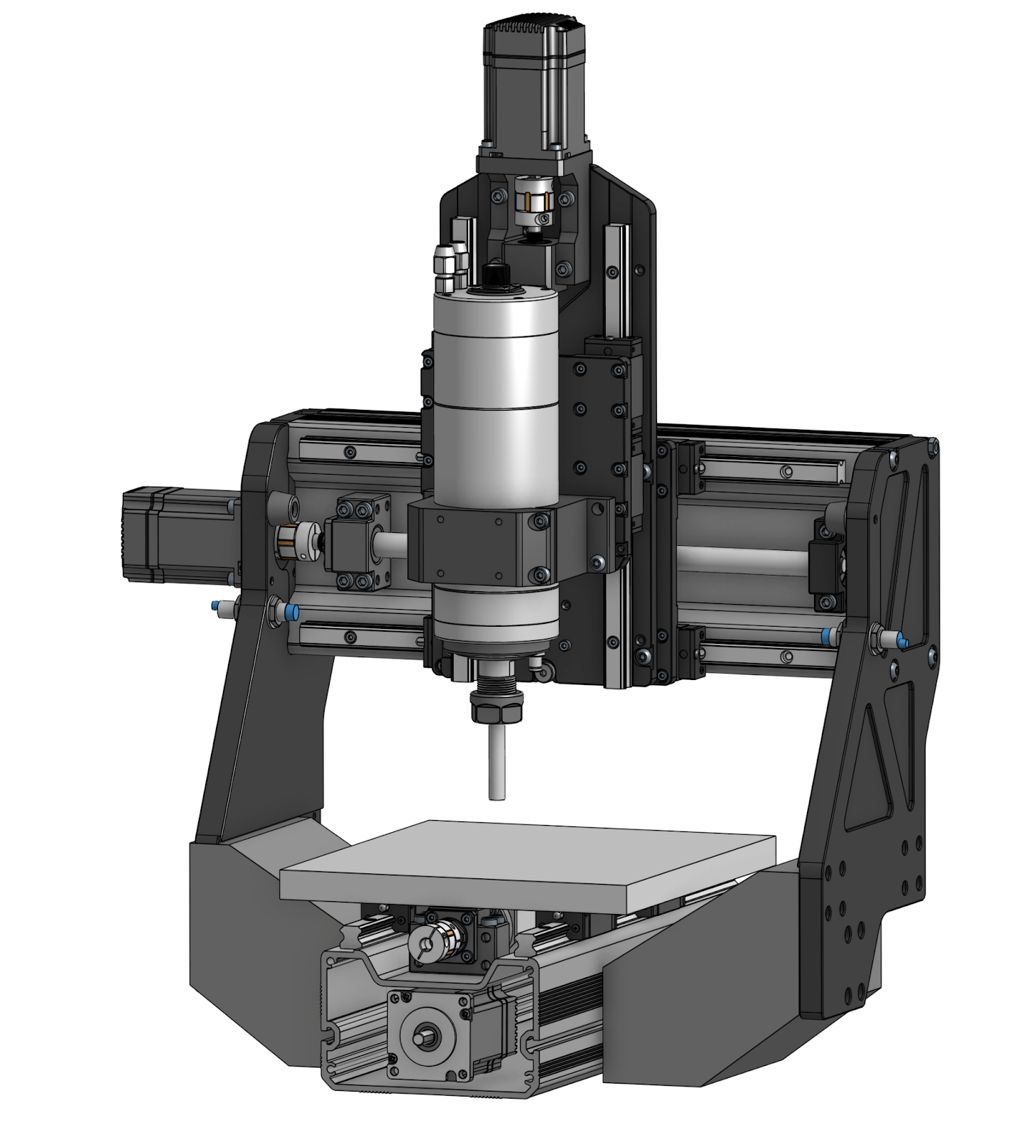 Very likely yes, since the AltMill offers a platform that can be made larger or smaller by changing the size of the rails and linear motion parts, as well as mixing and matching some of the components. Making a smaller machine is probably the easiest, since it doesn’t have the same problems as making a larger machine, as we will discuss next, and we have some ideas for making a machine more dedicated to milling smaller projects or metals, similar to the Langmuir MR1.